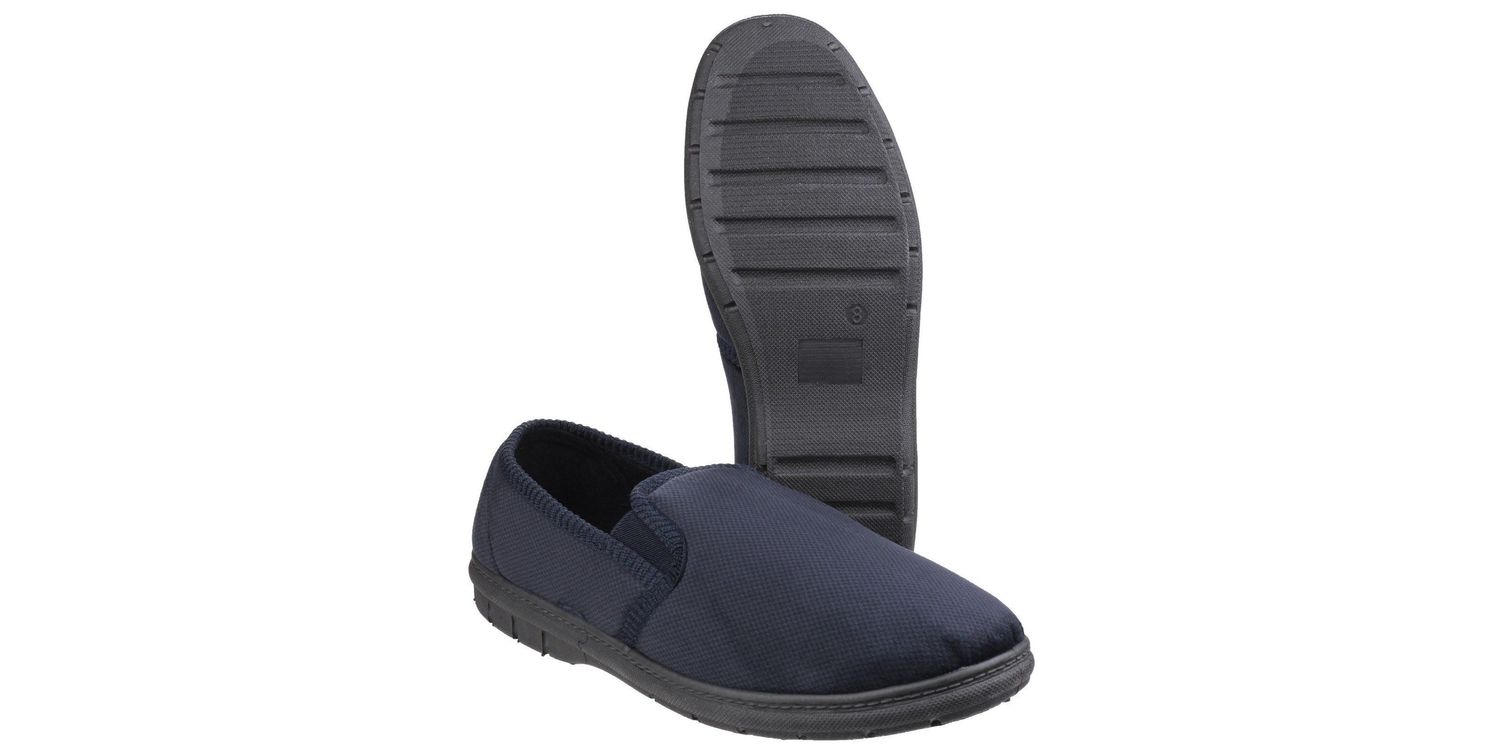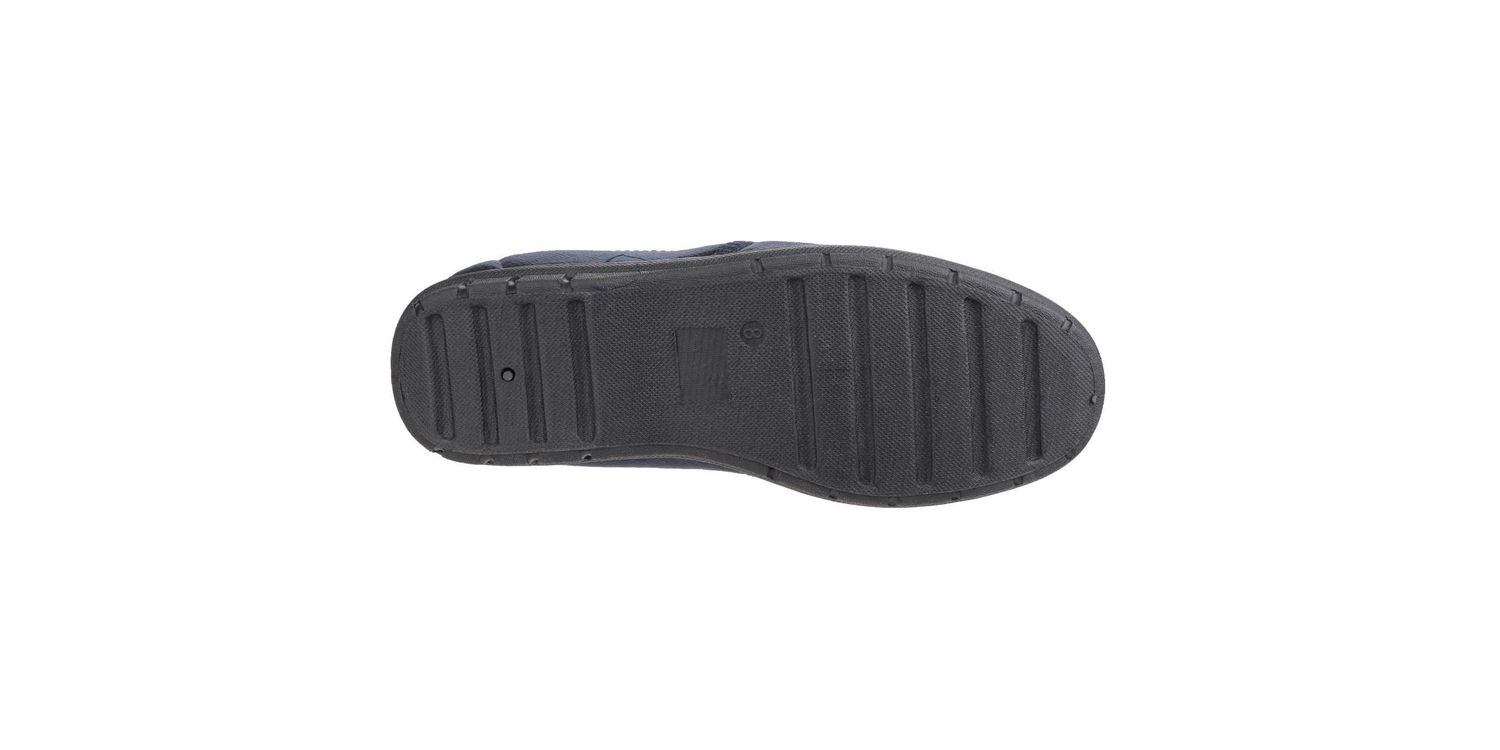 Crafted with a soft, navy synthetic upper and featuring twin elasticated gussets, this shoe offers easy slip-on access and a snug, flexible fit.