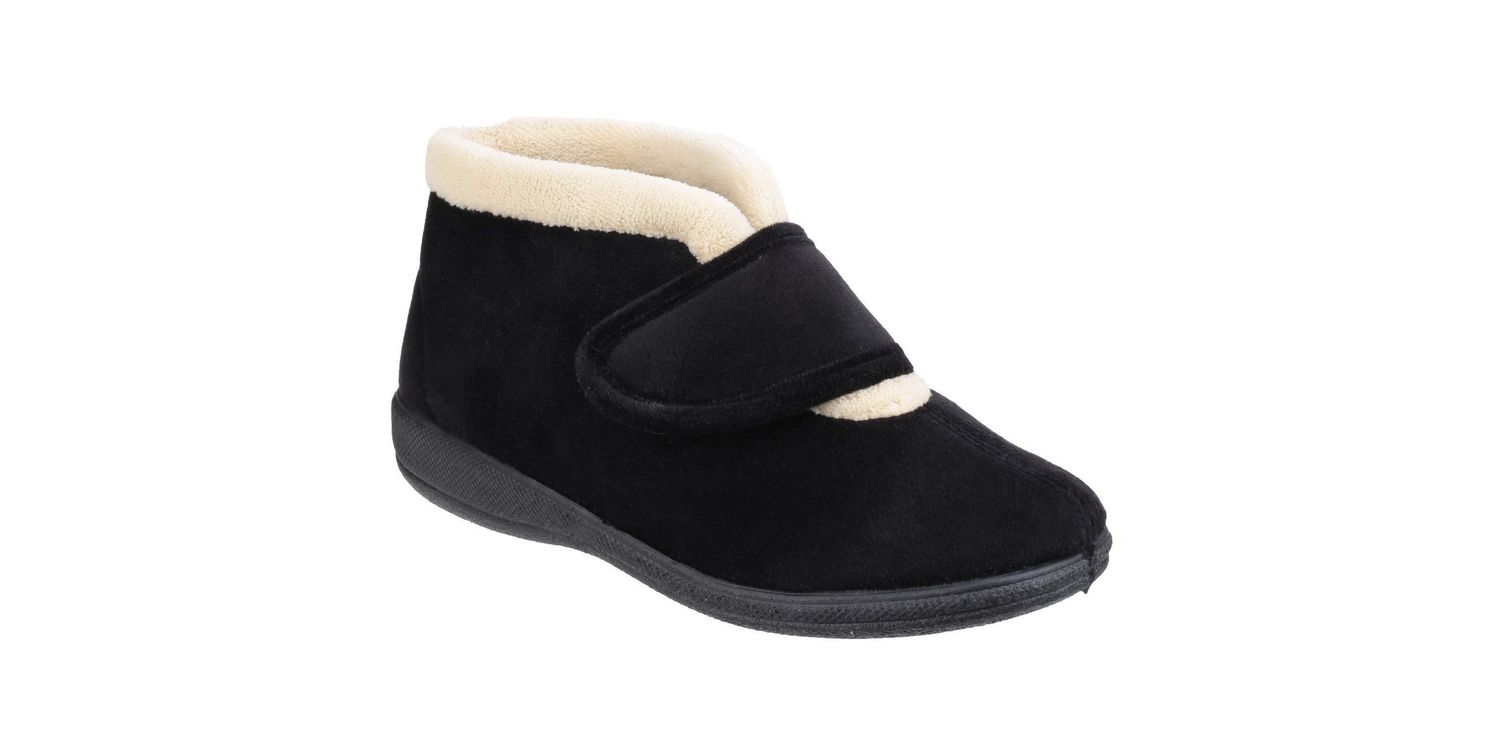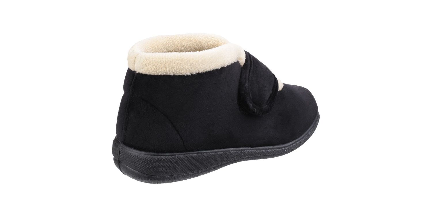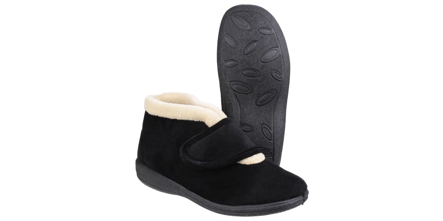 Take the pressure off your feet with these luxurious, instant comfort booties. The memory foam footbeds inside mould to your feet for a better fit and superb cushioning.. Luxury velour upper in comfortable bootee style. Wide v-neck opening with soft faux fur trim, warm lining and snug collar line. Easy-close one touch fastening flexible bar strap for adjustable fit. Memory foam footbed offers superb cushioning and moulds to your feet. Lightweight TPR Sole, ideal for unwinding.Textile/Textile/Other Materials. .