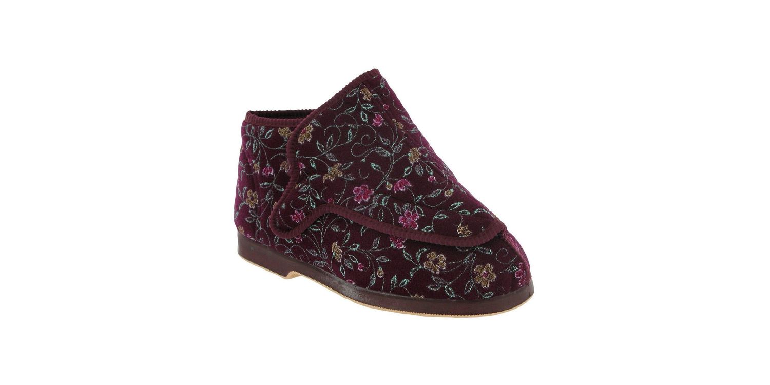 Super cosy easy touch-fasten womens bootee slippers from Great British Slippers. The elegant floral print uppers open almost down to the toe for easy entry and simply touch fasten. An adjustable design to accommodate for swelling. Machine washable.. Very simple to put on. Quick touch fastening soft fabric upper. Extra wide fit for added comfort and ease of change (Equivalent to 5E). Machine Washable at 40 degrees. Beautiful floral print design.Full textile sock and lining.Last follows natural contours of foot ensuring excellent fit.Vulcanised sponge rubber sole for cushion comfort and insulation. Hardwearing outer sole. Heel stiffener for support. Textile/Textile/Other. .