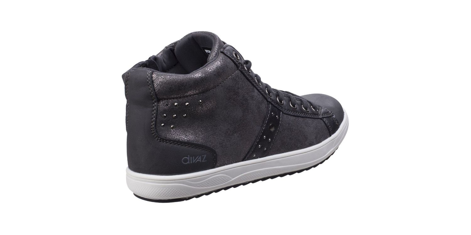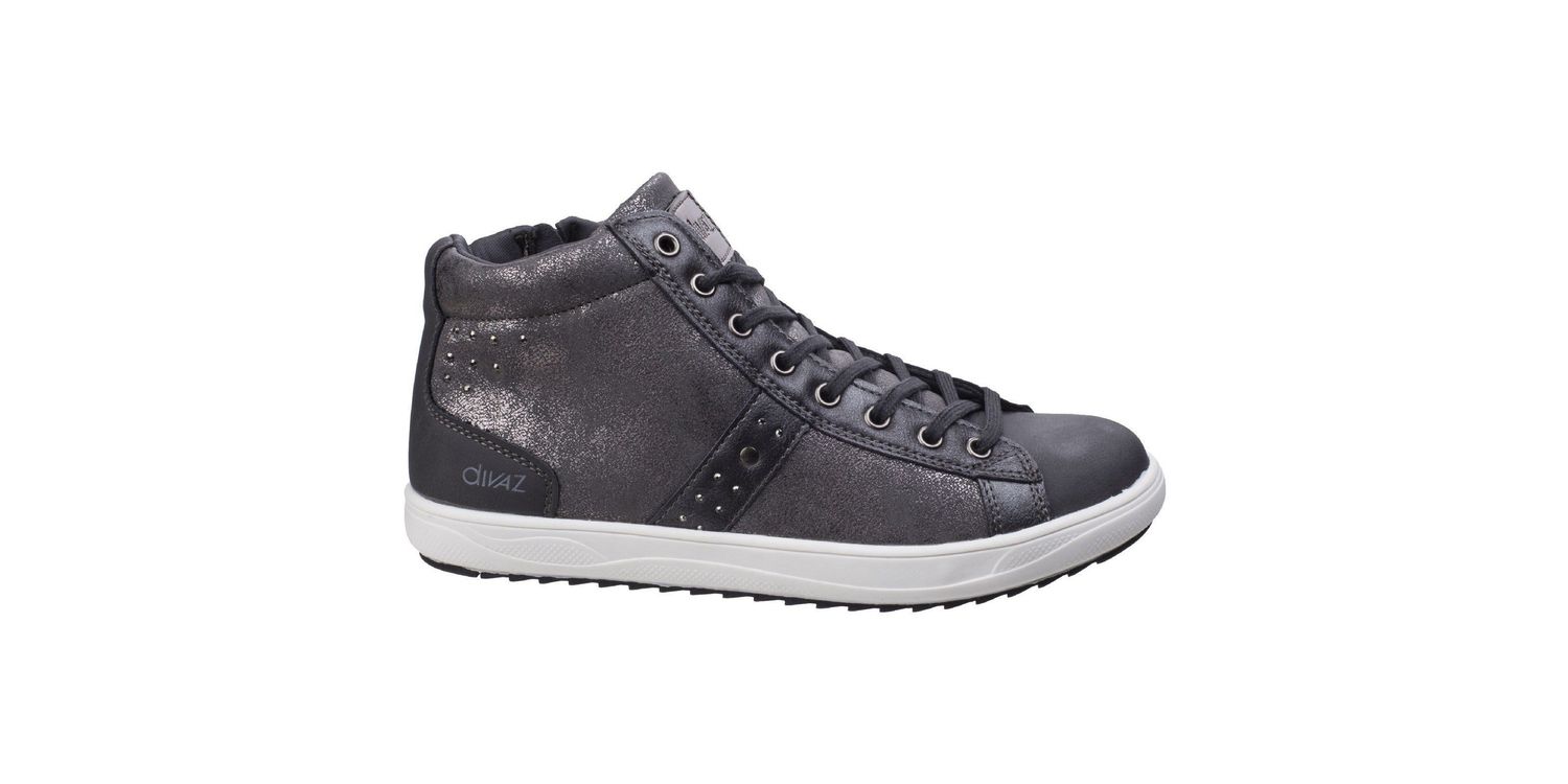 Dress up a day look with this glitzy skater-style sneaker boot with fun loving metallic stud embellishments and energetic sporty finishes.. Fun loving ladies' sneaker boot. Glitzy metallic print upper. Embellished metallic studs. Smooth toe vamp and metallic grain print tongue. Eight eyelets with trendy flat sneaker laces.Optional quick access inner zip.Comfort padded collar.Soft mesh comfort lining.. Trendy white TPR cupsole. Other/Other/Other. .