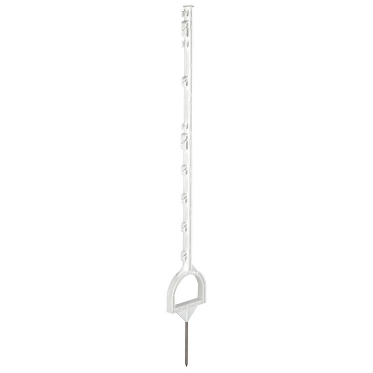 The Corral Plastic Stirrup Post is an adaptable and long-lasting fencing solution. This white stirrup post is designed for stability and longevity, with a height of 158cm and an 18cm spike for secure installation. It has eyes that can accommodate up to four ropes and eight tapes, giving you more options for configuring your fencing setup.