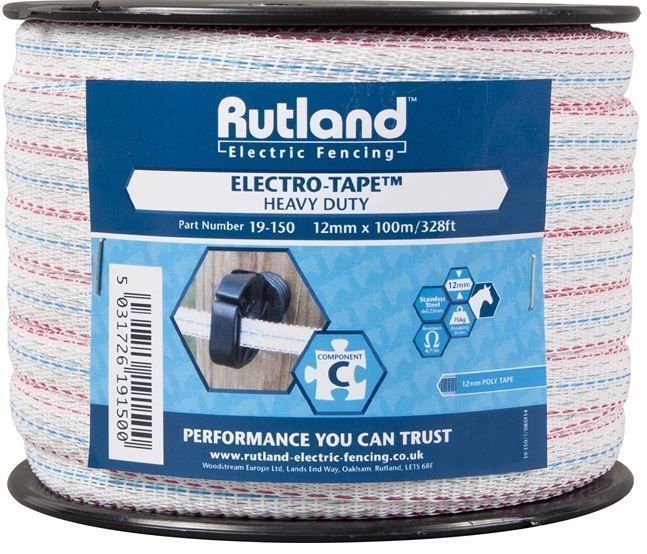 Heavy duty Electro-Tape for electric fencing in white.