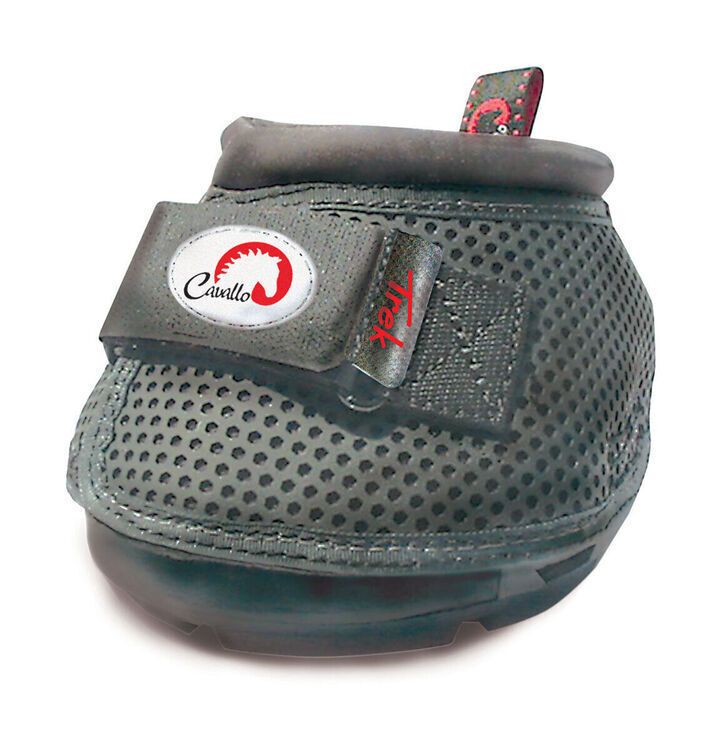 Simple to put on and remove, the Cavallo Trek Slim Sole stays securely on hoof. It features a durable construction including rust-proof metal, waterproof thread and a high-performance TPU outsole that absorbs shock and concussion. The Cavallo Trek Slim Slim is lightweight with a built-in sole relief to take the pressure off solebars and frog as well as moulded-in TPU back flap for maximum bulb protection.