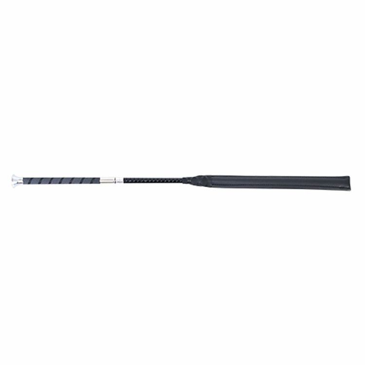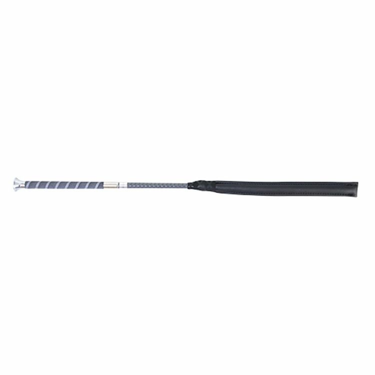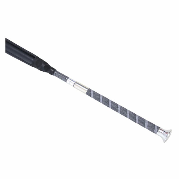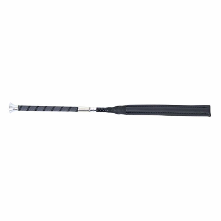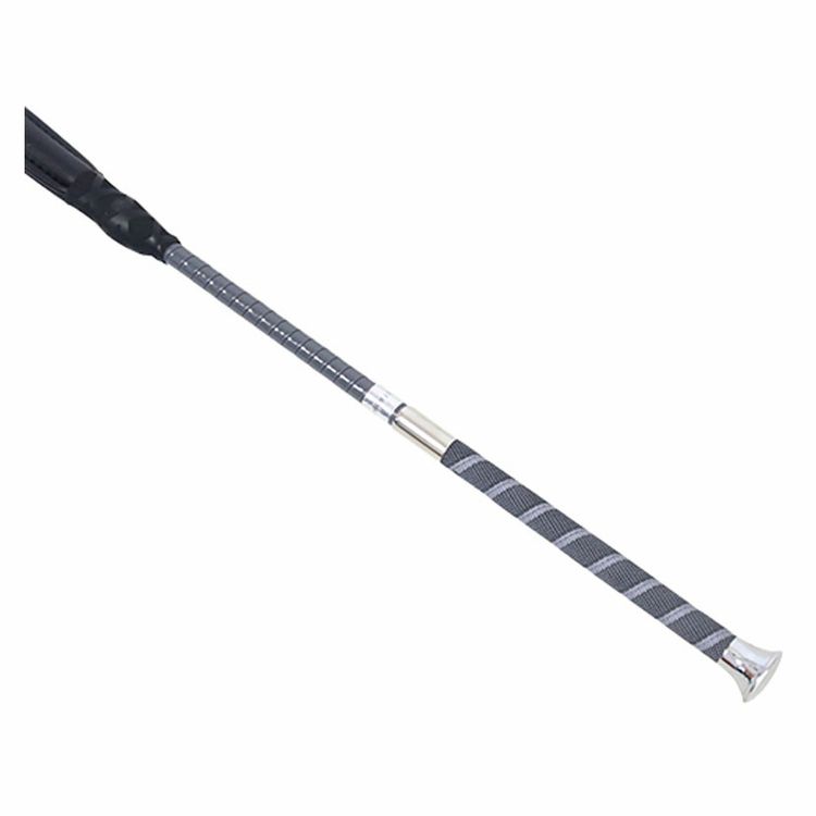 Its ergonomic handle ensures a comfortable grip, while the flexible shaft provides just the right amount of responsiveness when guiding your horse. The comfortable and colour co-ordinated grip handle is easy to hold, while the silver detailing and black, shock absorbing pad gives an elegant look.