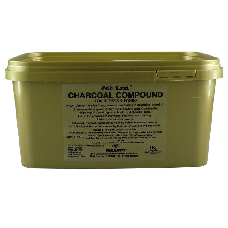 Gold Label Charcoal Compound For Horses & Ponies is a nutritional supplement that contains a scientific blend of pharmaceutical grade activated charcoal and kielselguhr. This supplement promotes good digestive health and helps horses absorb toxins. It should be used if there is diarrhoea, flatulence, or bloating; however, it is beneficial to intestinal worms.