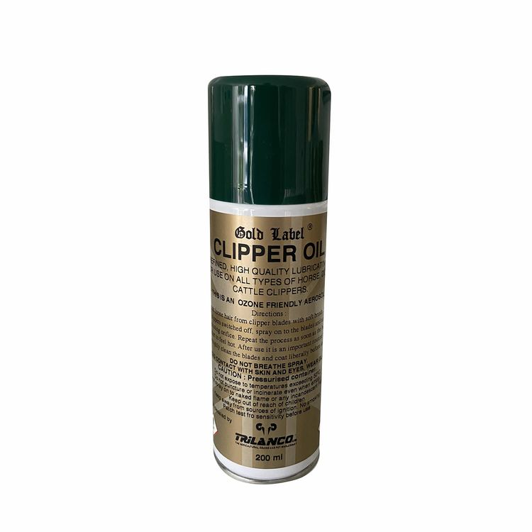 The Gold Label Clipping Oil Aerosol is a premium quality lubricating oil specially formulated for all types of horse, dog and cattle clippers.