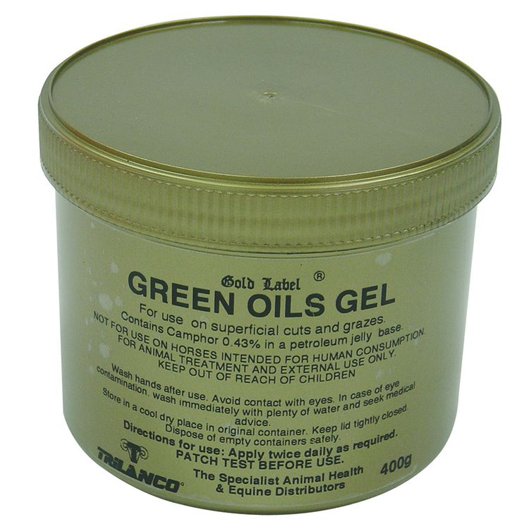 Gold Label Green Oils Gel is the perfect solution for treating superficial cuts and grazes on horses. This antibacterial gel features a petroleum jelly base infused with Camphor 0.43% to provide effective healing and protection. Simply apply the gel twice daily as needed to support the recovery process and keep your horse's skin in optimal condition.