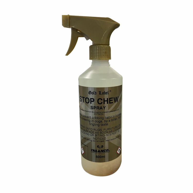 Gold Label Stop Chew Spray is a highly effective solution for preventing the cribbing habit in horses. With its bitter and hot tingling taste, it discourages horses from engaging in unwanted licking, sucking, or biting behaviours. Simply spray it onto rugs, wood, or any surface where the horse shows interest in such activities. This easy-to-use spray provides a practical and convenient way to deter cribbing and promote better horse behaviour.