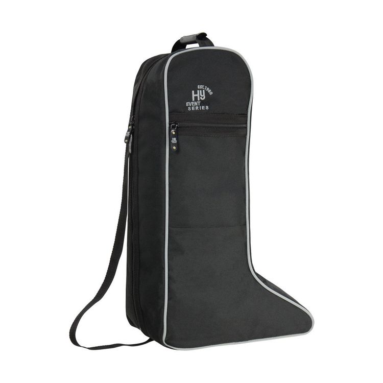 Handy storage for your long boots, made with a waterproof nylon outer and a secured with duo zip fastening to keep your boots dry and clean. Finished with a handy zip side pocket for storing your accessories, an over the shoulder carry strap and a grab handle. Part of the Hy Event Pro Series collection.