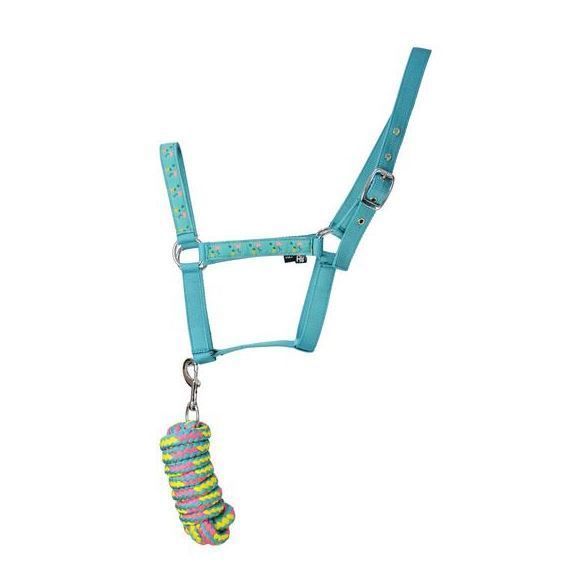 Hy Flamingo Pony Head Collar & Lead Rope - Teal/Blue