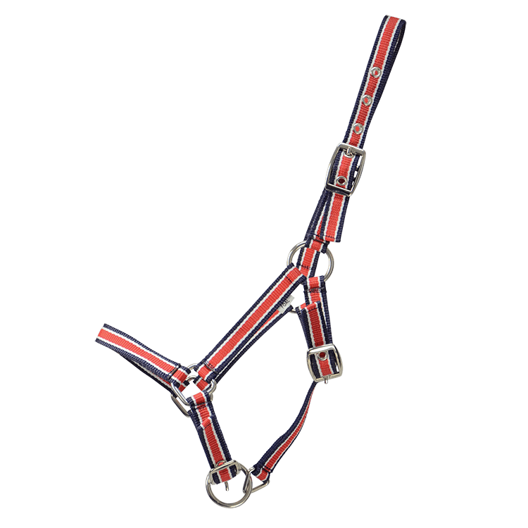 A strong and practical everyday, three buckle, webbing head collar with brass fittings. Fully adjustable so you can adapt it to fit as the foal grows.
