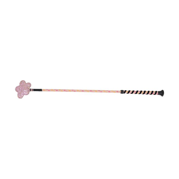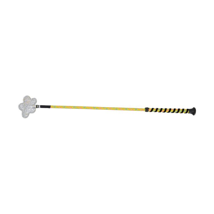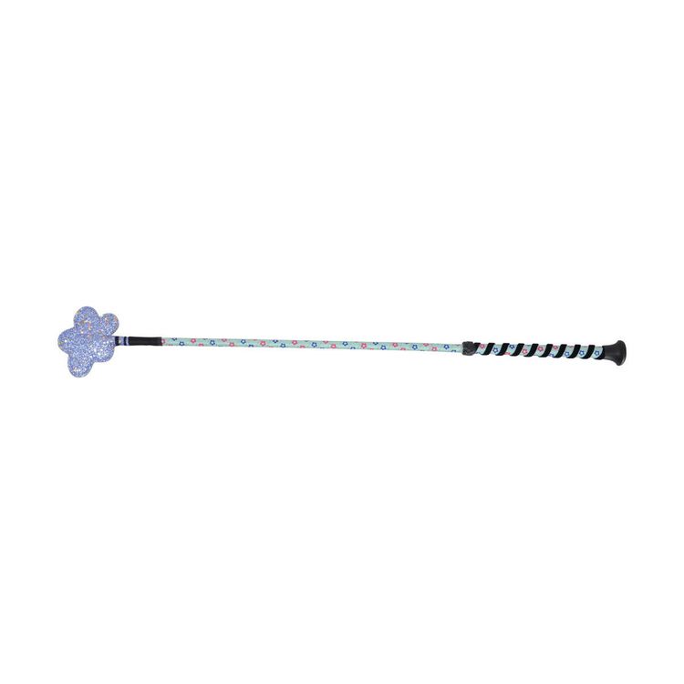 This fun whip will brighten any day! Printed flowers sit against the base colour of the whip broken up with a silver glitter wrap. A sparkly flower sits at the bottom of the whip whilst the top features a black wrap for added grip. Topped with a black cap.