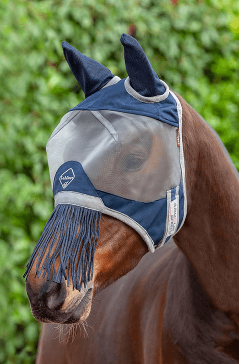 Armour Shield Fly Masks now have a more generous fit over the eye darts, around the cheeks and over the headpiece which allows a greater stand-off over the face and increased coverage. The heavier duty silver 75% UV protective mesh provides good protection from irritating flies while giving a clear, unobstructed view.