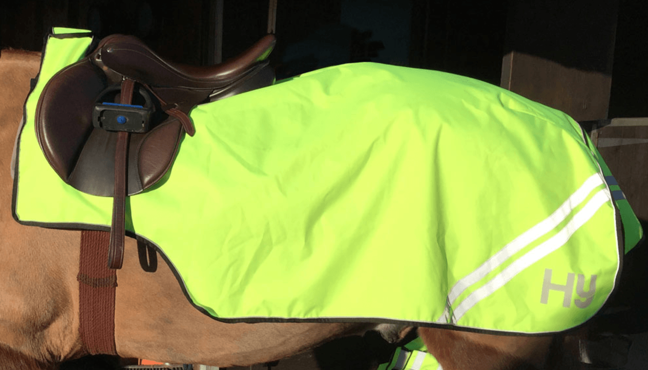 Keep your horse warm and visible with this fantastic fleece-lined exercise sheet. Perfectly shaped to keep the hindquarters protected from the elements and complete with a tail flap to ensure excellent visibility from behind. It features reflective piping around the edges and a double reflective strip on both sides that also appears across the tail flap, so you are sure to be seen from a distance!