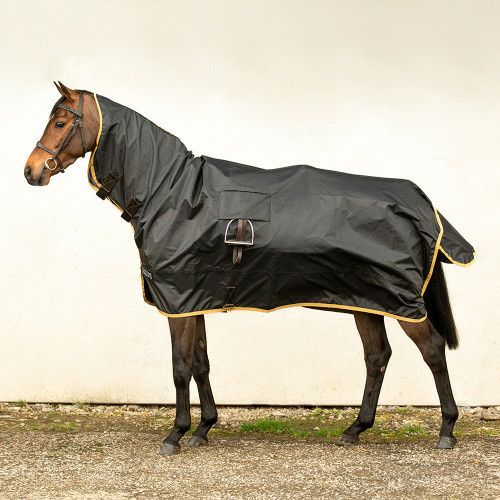 Keep your horse and tack dry with the Supreme Products Rain Sheet. The ride on design with stirrup holes makes this rug ideal for using while warming up at competitions or riding out in wet weather. Featuring an integrated neck cover and belly strap to keep securely in place, it comes in a handy small storage bag, perfect for popping inside your ring basket when stripping for the conformation phase at shows. Available in XS – XL.