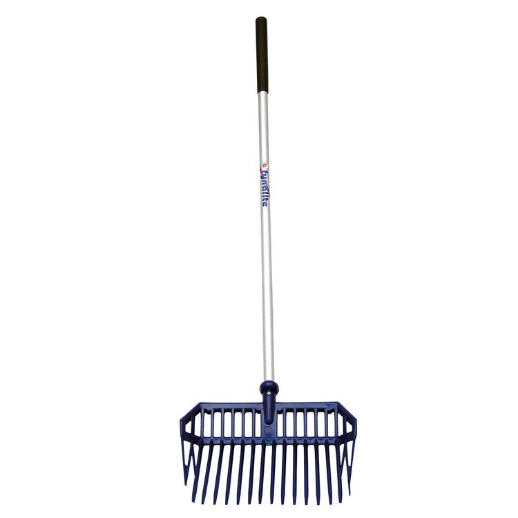 The fork's sturdy tines effectively sift through shavings, hay and other bedding materials, ensuring thorough cleaning without hassle or strain. Whether in the stable or the barn, this fork provides reliability and convenience for maintaining a clean and hygienic environment for horses and other stable animals.