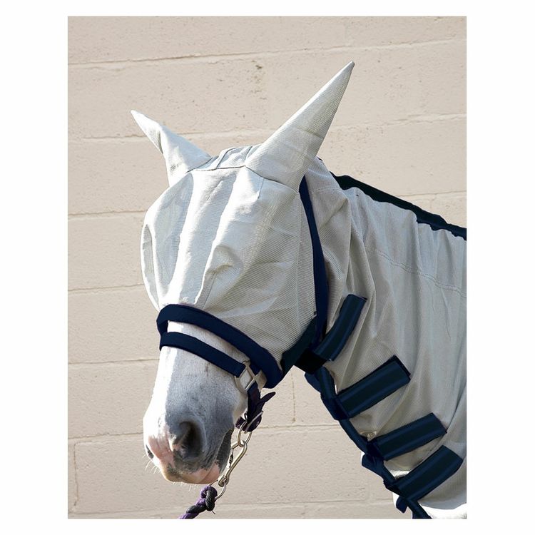 The DefenceX System Guardian Fly Rug offers full protection from biting insects. Manufactured from Polyester silver close weave mesh, it not only protects from insects, it also reflects the harmful UV sun rays helping prevent sun burn and sun bleaching. The cleverly designed neck fits over the ears to prevent it from slipping down and comes complete with a fly mask to protect the face, eyes and ears. The rug offers fully adjustable elasticated touch tape neck fastenings plus a protective belly flap with adjustable elasticated straps. Additional features include deep shoulder gussets to allow freedom of movement, a large tail flap, plus removable leg straps and anti-rub lining on the mane, tail and shoulder area. This fly rug ensures that your horse will remain comfortable and stress free all day long. Machine washable at 30°C.