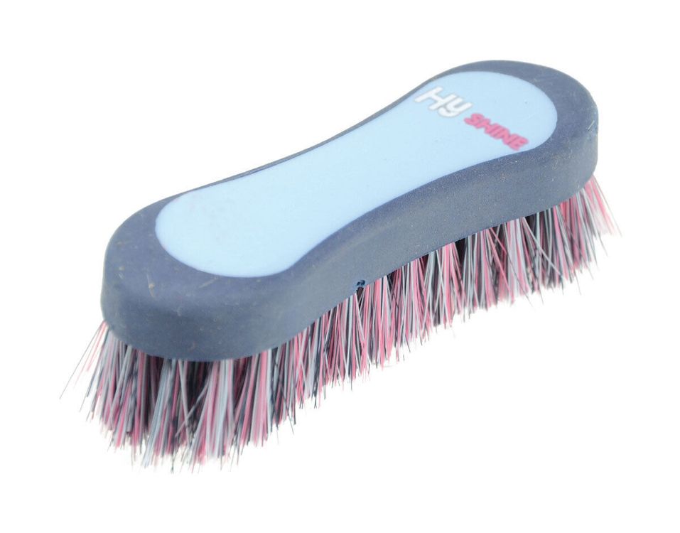 The HySHINE Pro Groom Face Brush is brightly coloured and easy to spot around the stables. It comes with a distinctive two-tone design and soft-touch PP bristles, making it safe to use on the delicate areas of your horse's face.