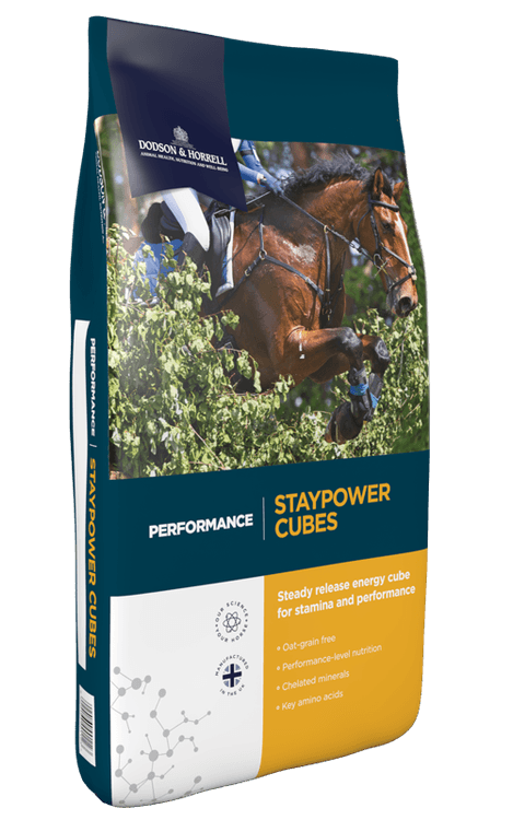 Dodson & Horrell StayPower Performance Cubes provide an even release of energy to support your horse's stamina, performance as well as a balanced temperament in nervous or highly strung types. The oat-grain free, lower starch composition also includes key amino acids to support muscle development and repair and electrolytes to help replace losses that occur as part of regular training.