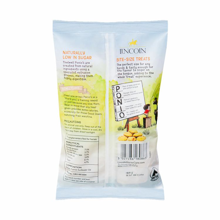 A Thelwell themed bag of yummy 'carrot-chip cookies' for thelwell lovers of all sizes & ages. Low sugar extruded Treats.