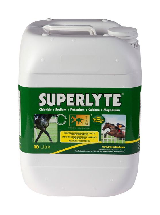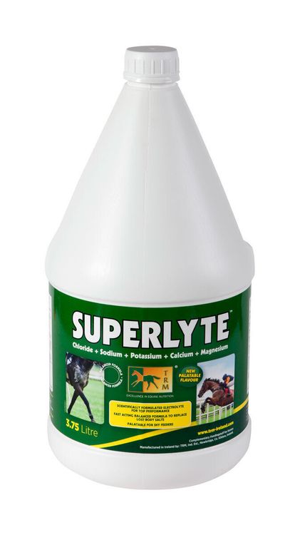 TRM 2:2:1 Superlyte Syrup is a palatable and convenient electrolyte syrup designed to replenish essential electrolytes lost by horses during exercise, sweating, or in hot weather. It is an easy-to-use liquid formulated to replace the four key body salts necessary for optimal hydration and performance. It rapidly replaces body salts in exactly the same ratio as they were lost in equine sweat: 2 Sodium: 2 Chloride: 1 Potassium. Palatable syrup with added glucose.