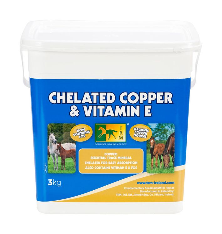 TRM Chelated Copper & Vitamin E is a premium quality complementary feed supplement for horses. Designed specifically for broodmares and young horses, this supplement contains Chelated copper, vitamin E, and prebiotics to support and enhance your horse's overall health and well-being. This product provides a cost-effective and easily absorbed form of these essential nutrients, ensuring maximum benefits for your horse. Simply add 25g of the supplement to your horse's daily feed for optimal results. With TRM Chelated Copper & Vitamin E, you can be confident that you are providing your horse with the best possible nutritional support.