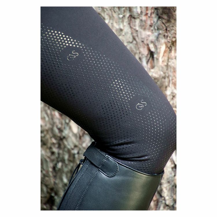 The unique silicone pattern full seat offers extra security for the rider and comfort is achieved when worn with long boots thanks to the no bulk stretch hem ankles.