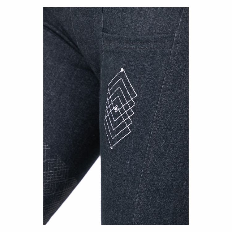 A fashionable choice for any equestrian athlete, the Jesmond Jewel Denim Look Tights offer guaranteed comfort thanks to their stretch material. These tights feature tonal diamond shaped embroidery to the handy phone pocket and two practical back pockets, all finished off with delicate silver diamantes for a subtle bit of sparkle. The tonal matte 3/4 silicone print seat is shaped to match the diamond shape stitching for added style and additional grip in the saddle.