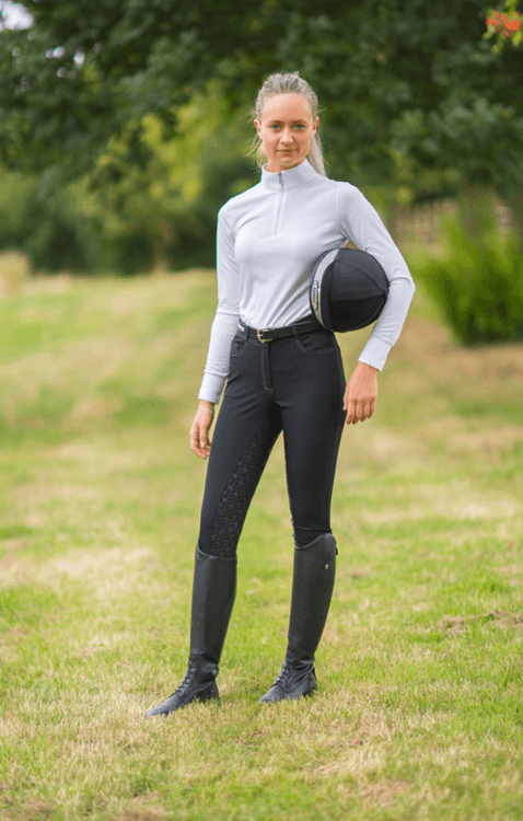 Merlewood offers the perfect combination of comfort, practicality and style all in one breech. 4-way stretch material ensures a comfortable fit allowing unrestricted movement whilst the full seat in the signature Hy honeycomb silicone print ensures security in the saddle. Cut to a mid-rise waist with no bulk stretch ankle cuffs they also feature four practical pockets – two front and two on the rear. Contrast stitching to the waist, zip and pockets adds the finishing touches.