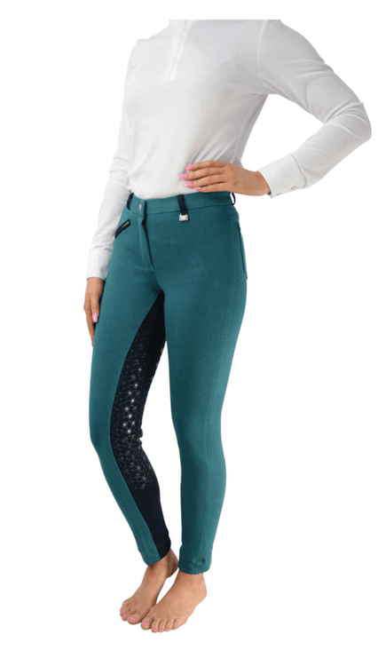HyPERFORMANCE Saxby Silicone Jodhpurs - Peacock Green/Marine Navy