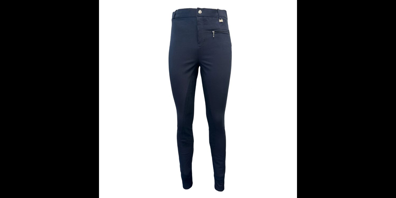 The durable knee patches offer added grip and longevity, while the elasticated lower leg ensures a secure fit under boots. Finished with a smart navy design, these breeches are ideal for everyday riding, training, or competitions.