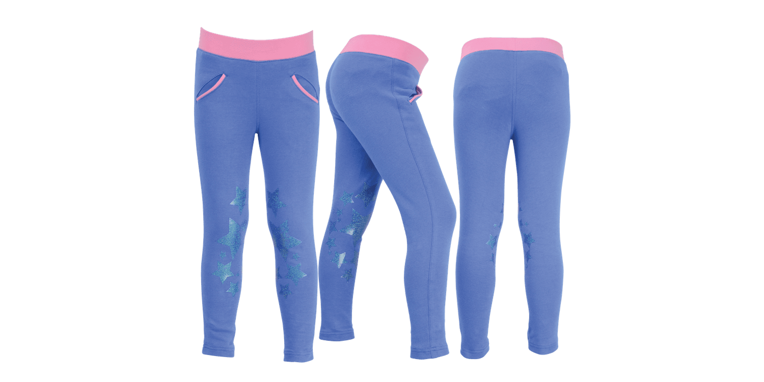 A must-have item in any child’s wardrobe – these leggings are soft, comfy and fun. Sparkly, glittery silicon knee patches in a star and heart design for added grip and style. Contrast waistband colour and pockets.