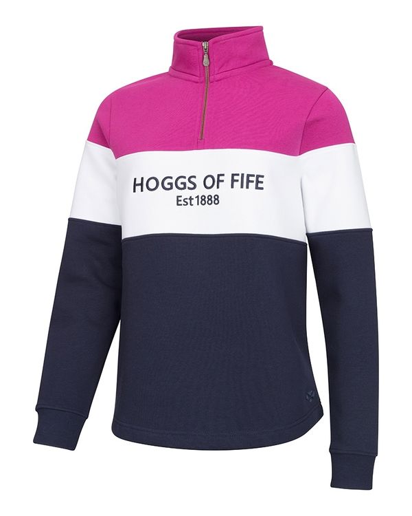 Hoggs of Fife Dumfries 1888 Ladies 1/4 Zip Berry/White/Navy Sweatshirt