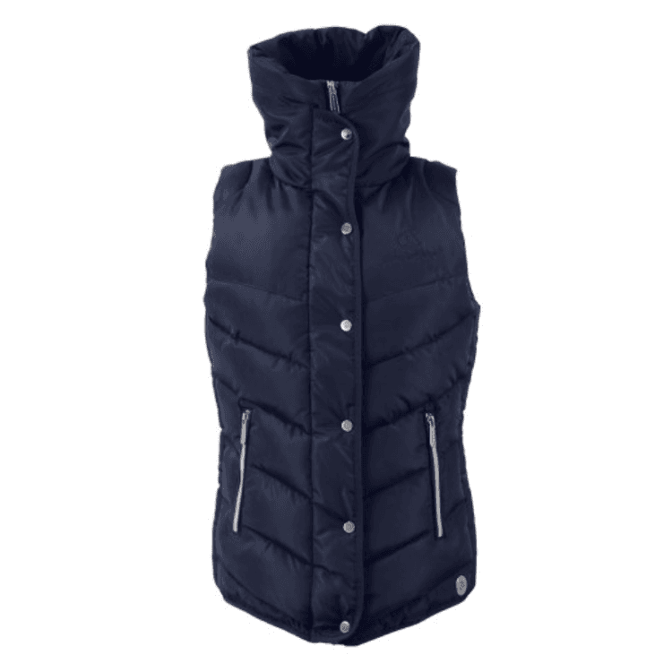 A stylish and versatile padded gilet offering protection from the elements, both in and out of the saddle. The quilted panels retain heat with the excellent insulation properties of the faux duck feather down. The gilet is not only breathable and water repellent, but it also has a high storm breaker neck for additional warmth and comfort, while a faux fur detachable neck trim is included on the inside of the collar.