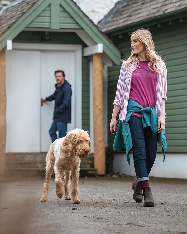 Relaxed, refined, and versatile, the Hoggs of Fife, Women's Sophia Oversized Seafoam Stripe Shirt, is a great addition to any women's country clothing wardrobe.