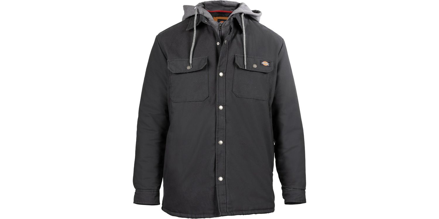 The Dickies Black DWR Hooded Duck Jacket has a water-repellent outer layer and a quilted lining to keep you warm and snug when you're out in all types of weather. There are also numerous compartments to keep your necessities close at hand. This stylish duck jacket is made of 100% cotton and is ideal for a variety of occupations such as construction, painting, plumbing, logistics, farming, and electrical work.