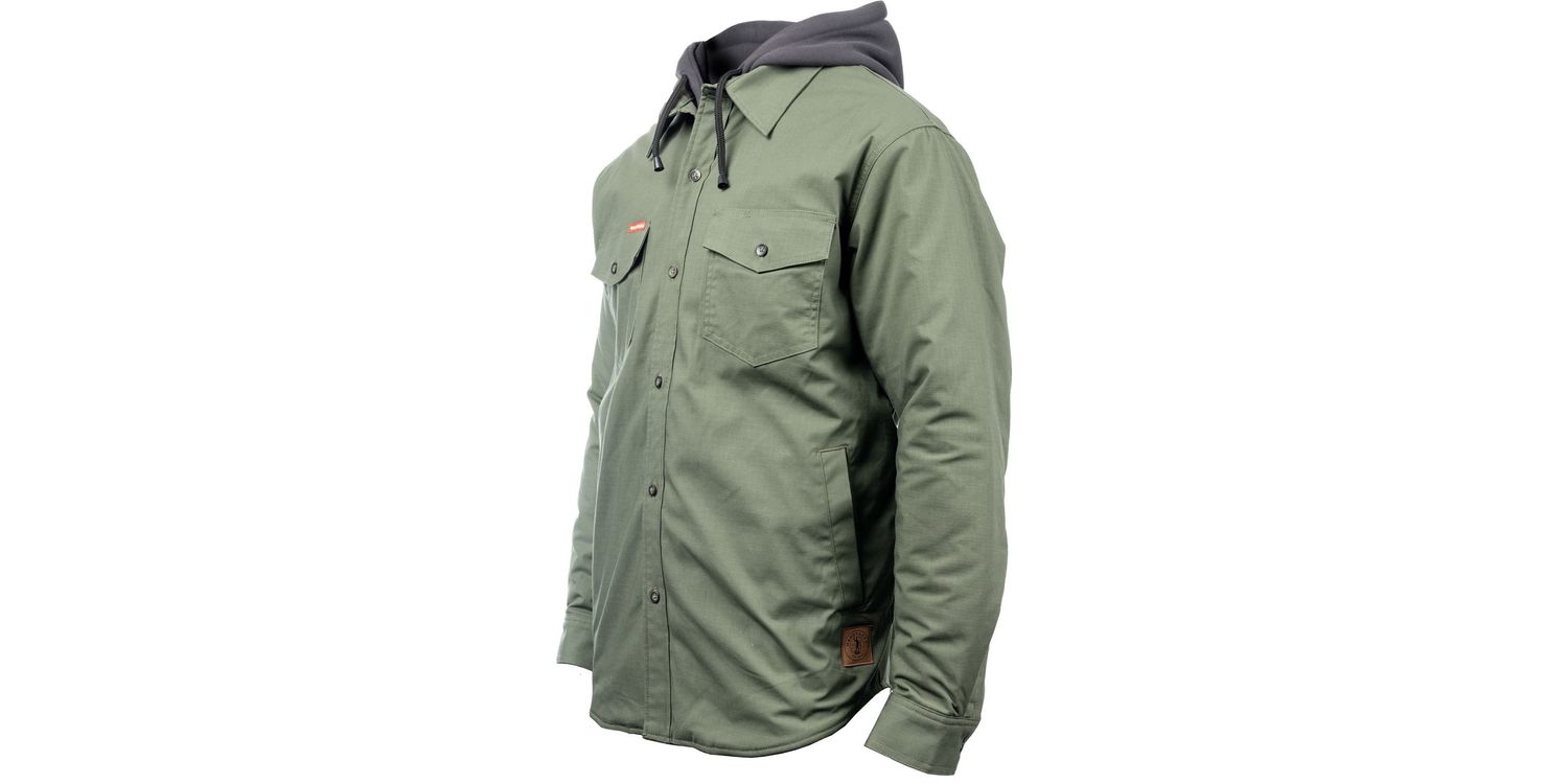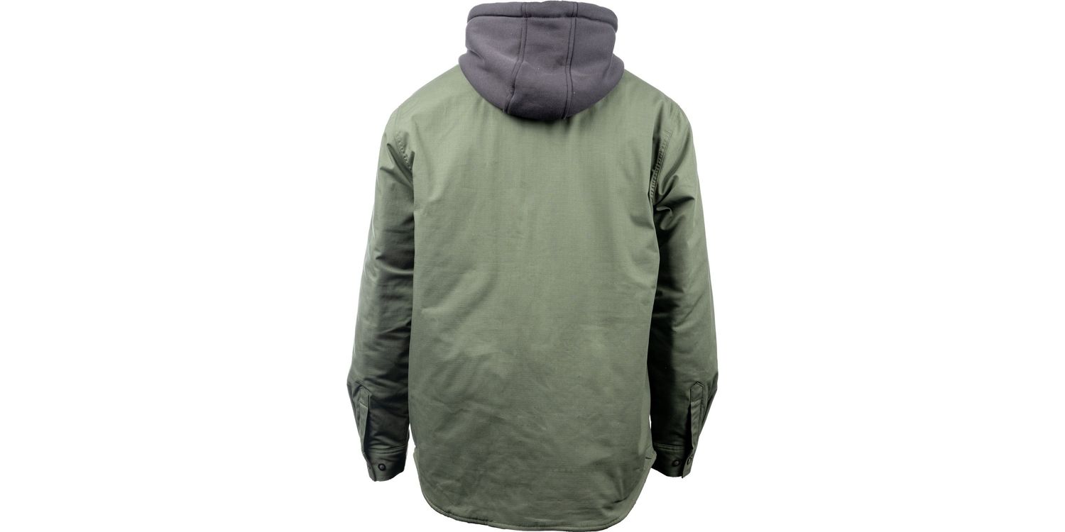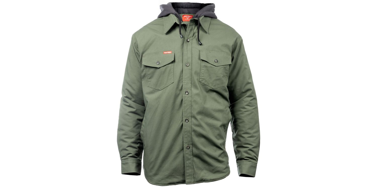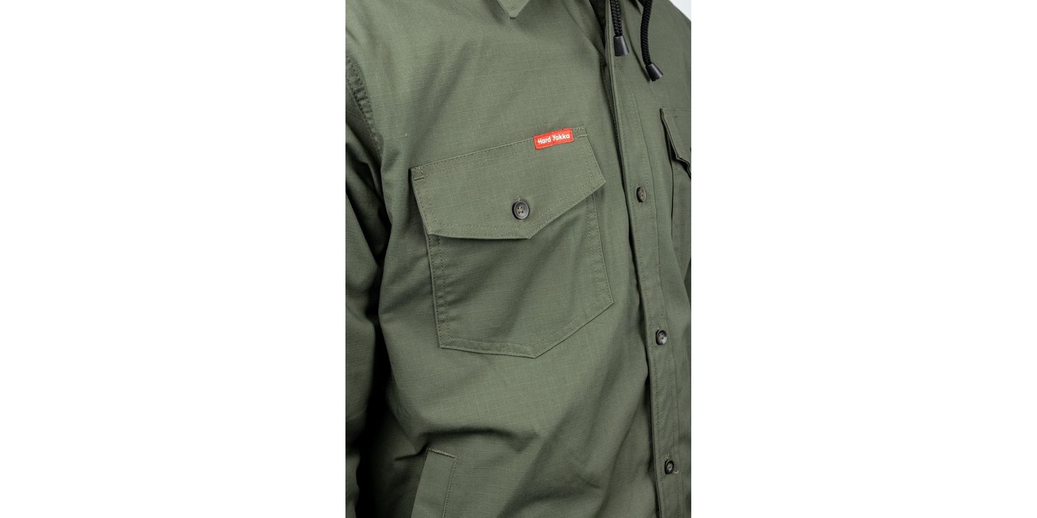 The Hard Yakka Men's Quilted Solid Green Shacket is a timeless piece, which will see you through the colder months. It has a quilted lining and fleece hood for added warmth.