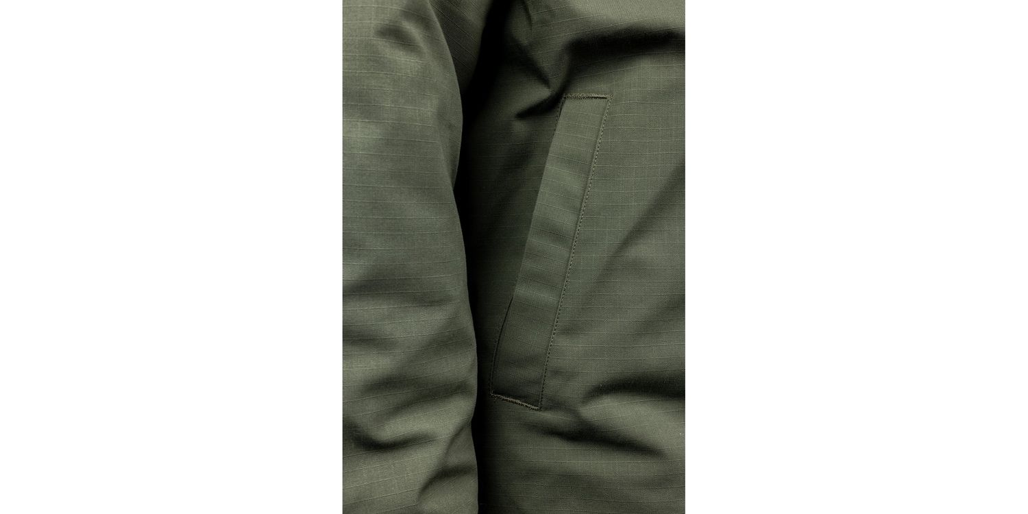 The quilted design ensures added insulation, while the solid green colour offers a classic, rugged look.