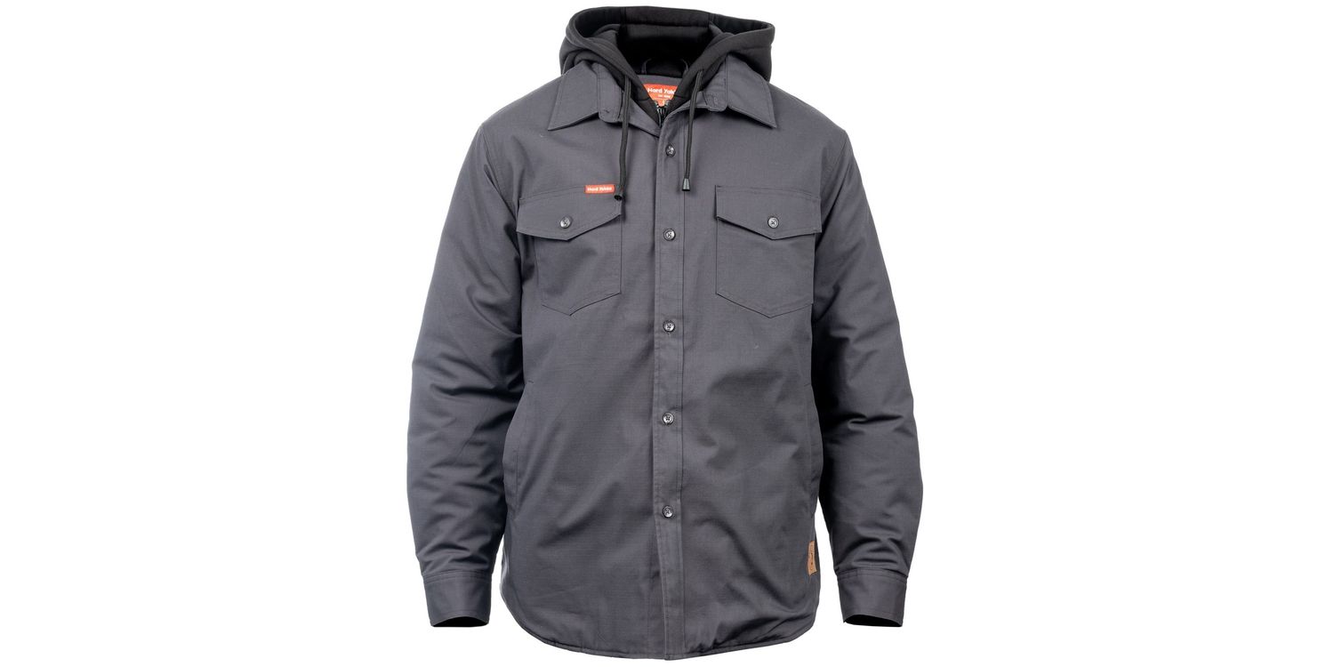 The Hard Yakka Men's Quilted Solid Grey Shacket is a timeless piece, which will see you through the colder months. It has a quilted lining and fleece hood for added warmth. It is a functional piece with its multiple pockets for convenience.