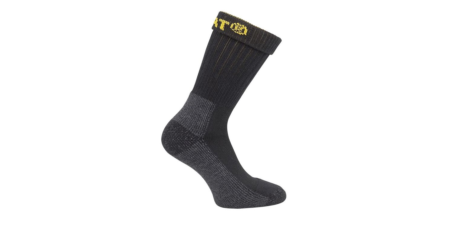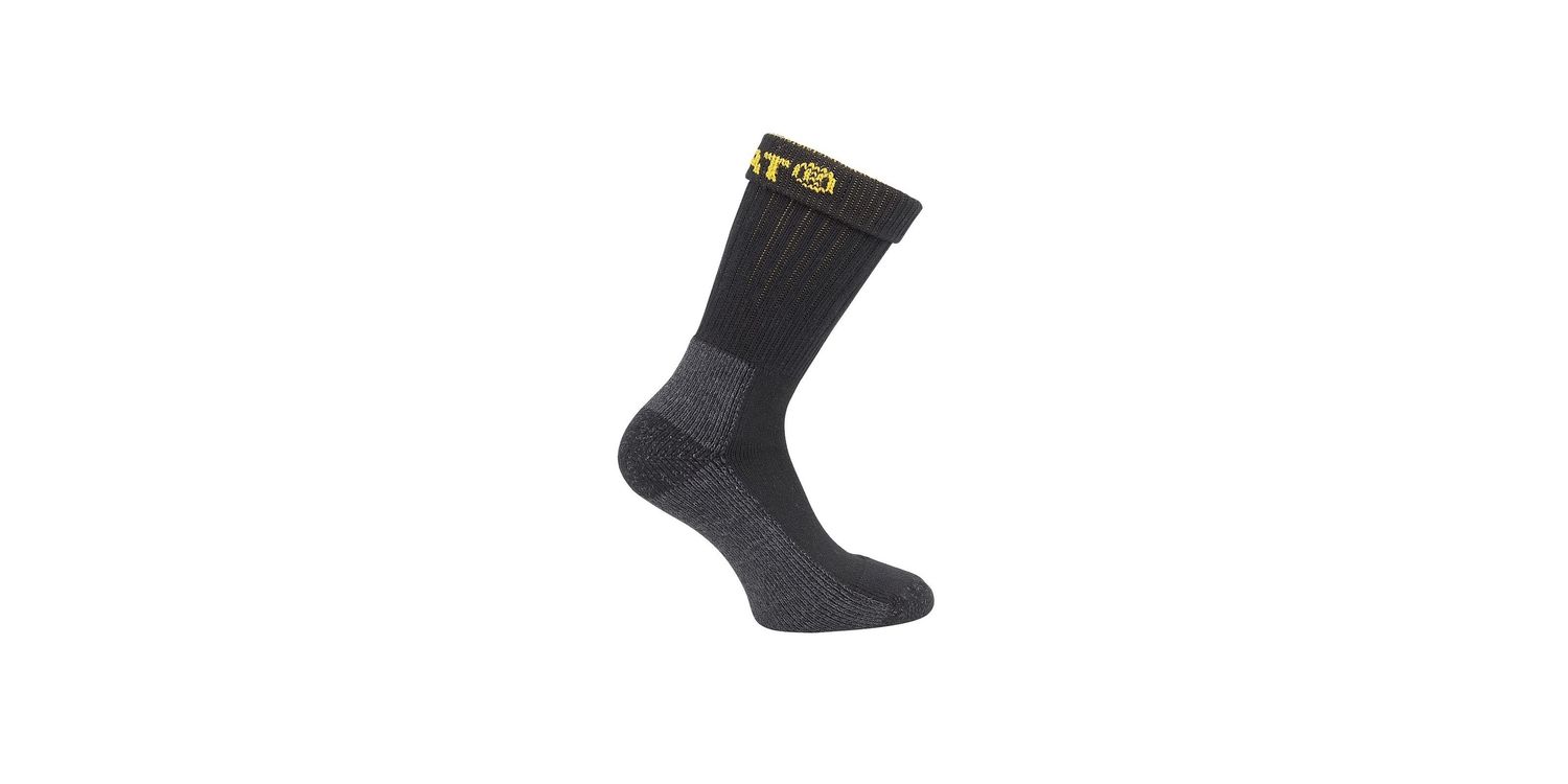 Industrial Work CAT socks. Accident Prevention, extra durable toe and heel, top quality Cotton to keep your feet warm and comfortable all day.Two pair packHeavy duty boot sock with contrast logoHigh stretch top for ease of wear with minimal compressionAlignment points prevent sock movement