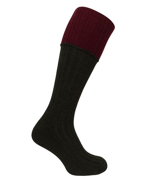 Hoggs of Fife Contrast Turnover Top Socks in Dark Green/Burgundy (1 pack)