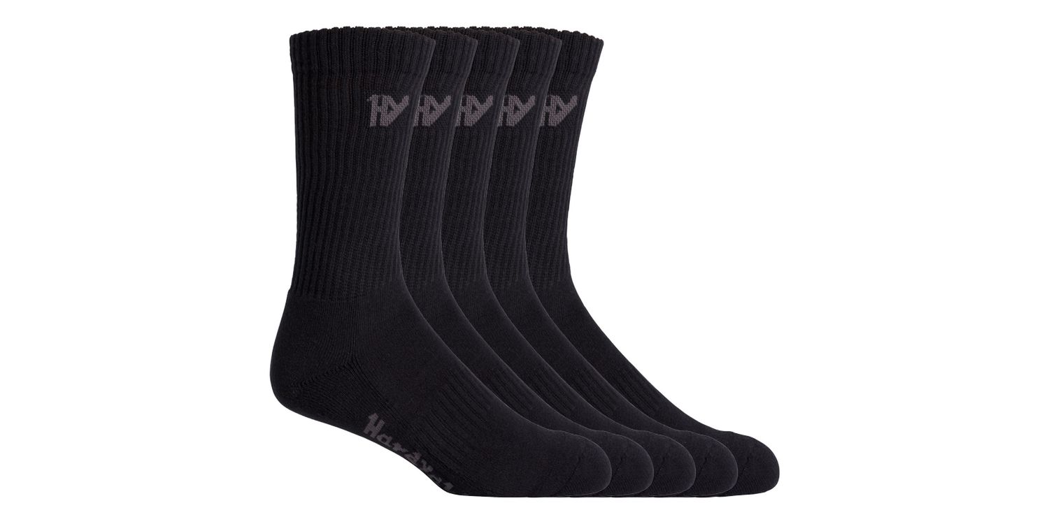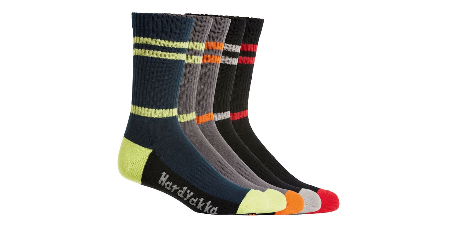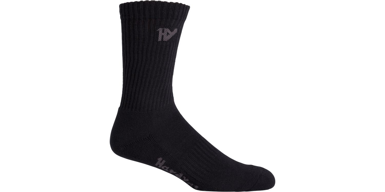 Everyday socks you can wear year-round. These men's socks are made from a high-quality polycotton blend with a comfy padded footbed and seamless toes.Naturally breathable cottonPadded footbed for supportSeam-free toe for comfortIconic Hard Yakka script logo