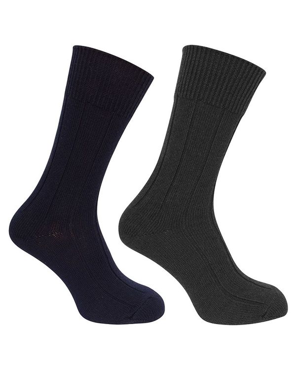 Hoggs of Fife 1906 Brogue Merino Country Socks in Navy/Green (Twin Pack)