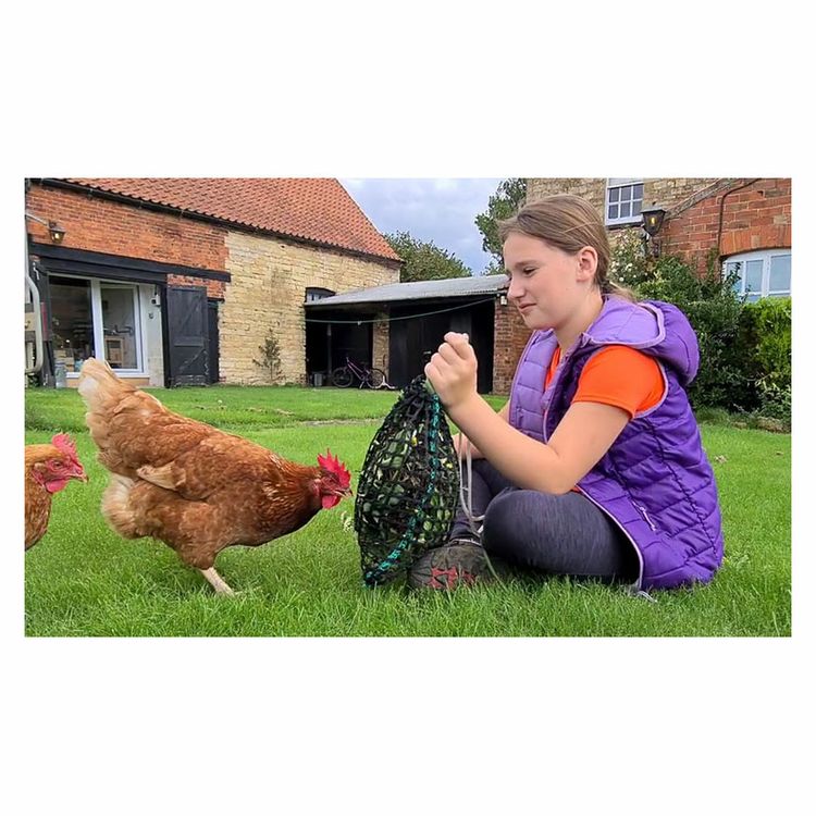 Designed to trickle feed naturally sourced treats, the Meadow Net is also ideal for feeding fruit veg and salad. It keeps the coop floor cleaner and provides excellent enrichment for your chickens. Comes with a foraging guide book, so you can source natural tasty plants around the garden or fill it up while walking the dog!