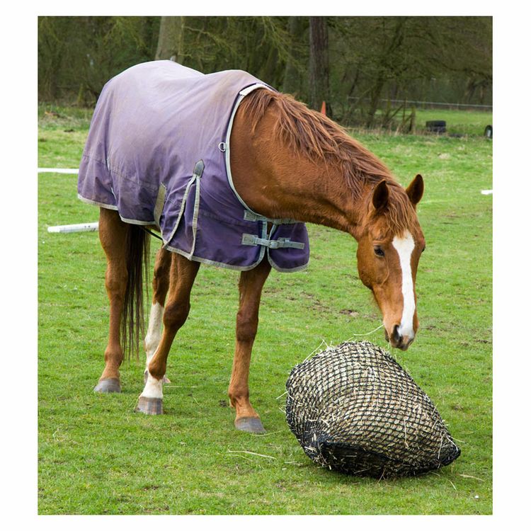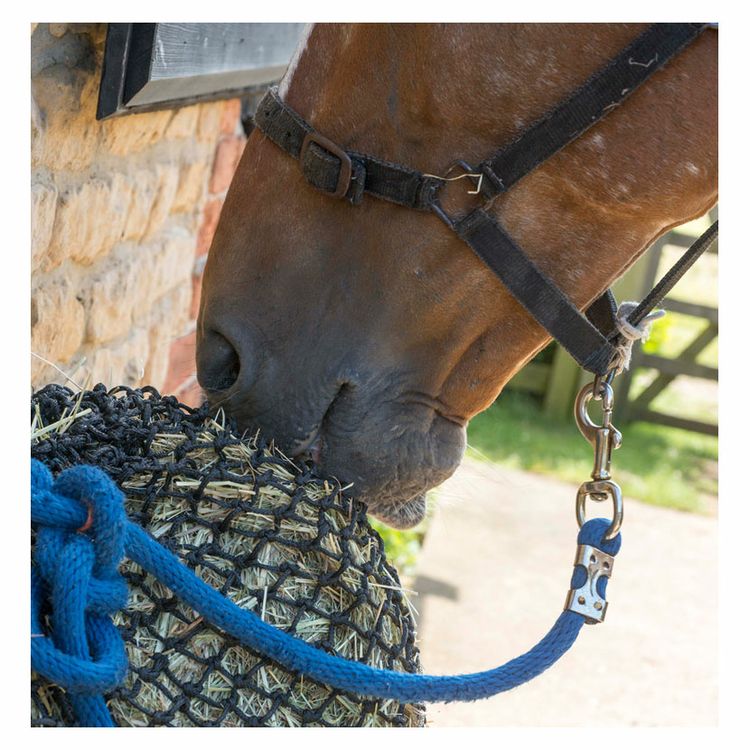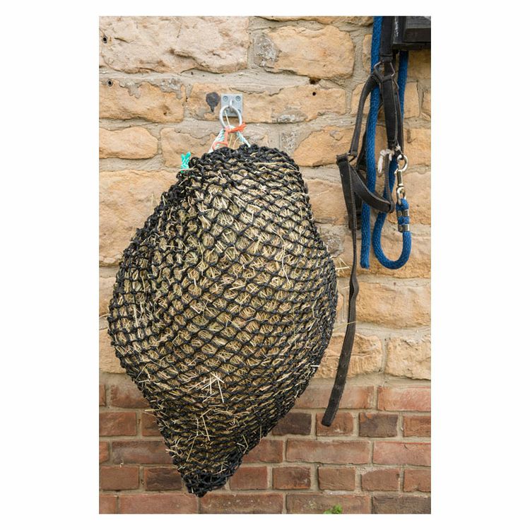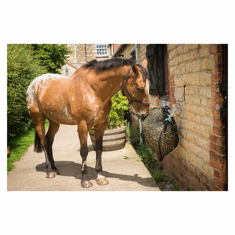 The Trickle Net Original is a totally unique, super tough and highly effective slow feeding net. Each one is handmade with heavy duty 4mm twine, 25mm holes and fixed knots to prevent stretching or ripping. Holds 8kg dry hay, enough for large horses. These nets are rot proof and can be used for soaking. Very useful for weight control or to ensure horses always have forage available. Recommended by vets for laminitis management and to aid gut health through trickle feeding.