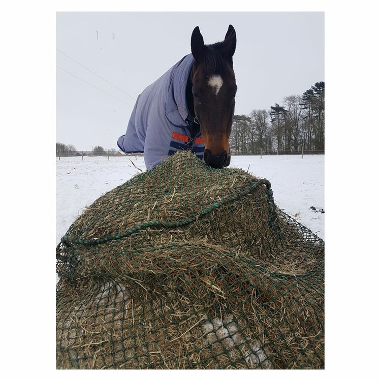 An amazing net which is a game changer when feeding large bales. Cuts waste by up to 100%. Bales last almost twice as long. Our super tough netting has fixed knots and a rope seam for strength and to help you locate the net on the bale. The hole size in this net is 35mm, which is ideal for control and waste reduction. Fits round bales up to 152 cm in diameter.