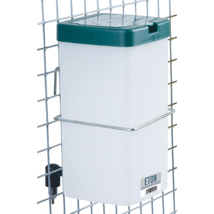 The Eton Plastic Square Nipple Drinker Natural is a versatile water dispenser suitable for various animals including chicks, older poultry, game, and pets like rabbits. It features a poultry nipple that allows chicks to easily access water. The drinker comes with a wire hanger for easy attachment to a mesh or can be used with a comfort brooder for added convenience.