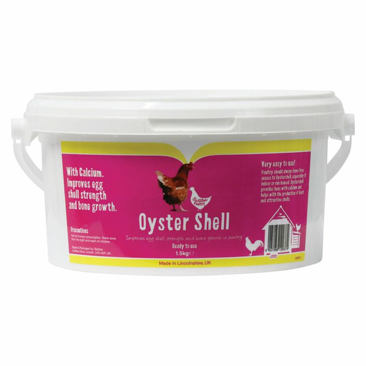 Poultry require free access to oyster shell to provide them with essentil calcium. Helps with the production of hard and attractive shells.