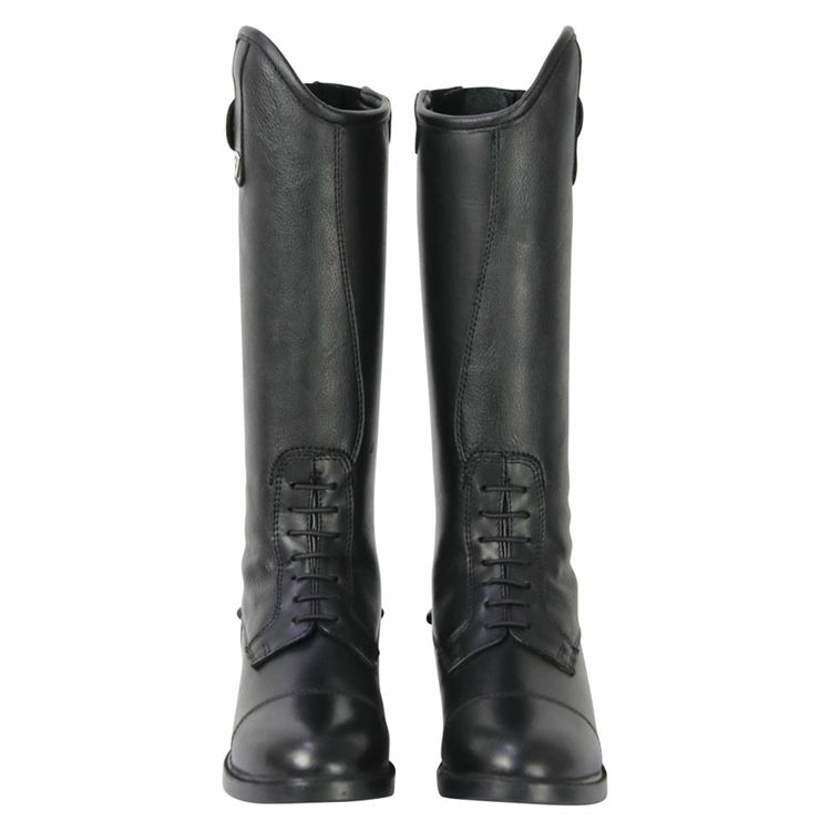 This stylish long boot is perfect for competition of everyday. Fitted with lace fronts for the classic field boot look and elasticated back panels for a streamlined fit, added comfort and ease of fastening. Featuring spur studs on the heel for optional use and press button spur guard to the bottom of the boot. These boots are finished with a zip fastening and top press stud closure and are fully lined for added comfort and sit on an anti-skid sole for added durability and stability.