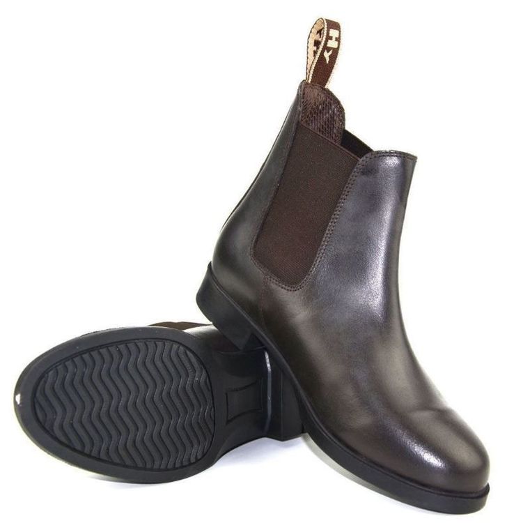 HyLAND Durham Leather Jodhpur Boots are smart and stylish multi-purpose riding and everyday walking footwear. They feature a high-quality leather construction and a cambrill lining, a heel grip rubber sole for support and comfort and elasticated sides for an easier fit and simple removal.